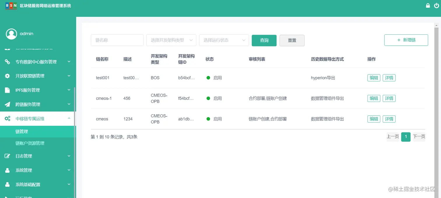 (1)管理员可通过链管理对中移链的网络节点进行新增和启停的操作,从而提高中移链的运维效率。