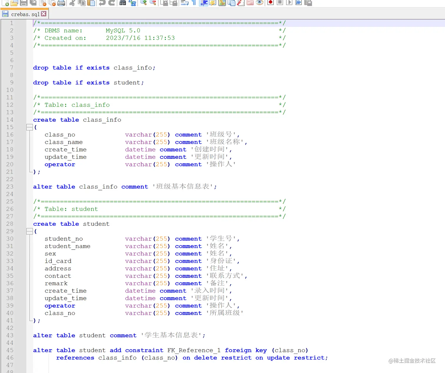 实体和关系的ER图绘制完成后,接下来就是导出建表SQL语句了。