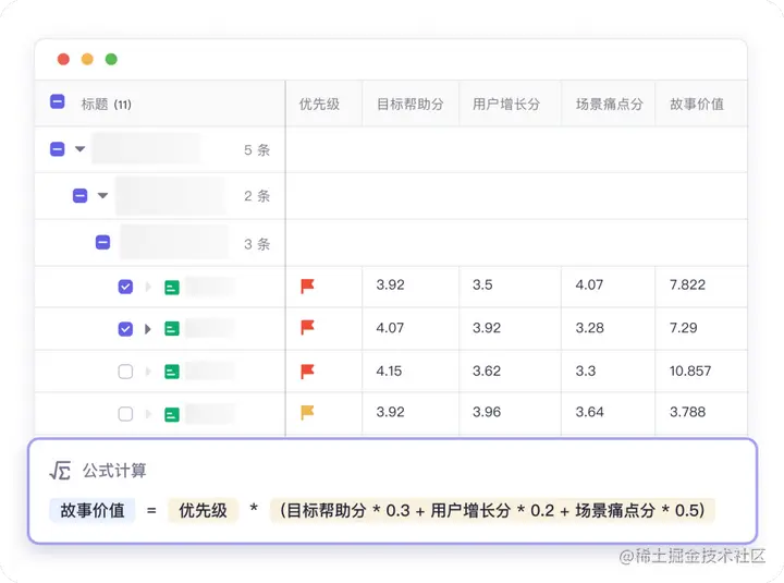 其次,量化业务价值,让研发贡献更加清晰。 LigaAI 设计了一套**「价值因子评分体系」**,将其与最佳实践和方法论结合可以引导研发团队逐步拆解、绘制与目标相关的价值因子矩阵,将故事价值具象化、标准化。在对外协作中,价值量化也会驱动研发团队拉齐跨部门、跨组织的目标共识和价值认知,让所有人理解「为什么要做这个功能」。