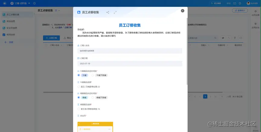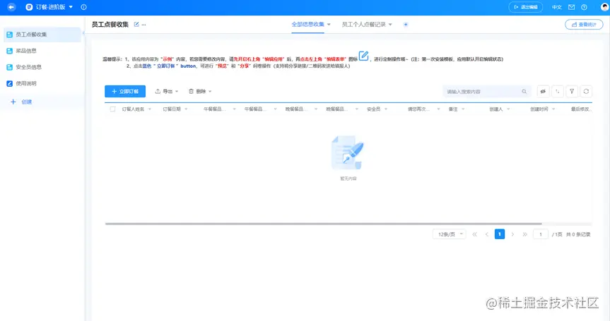- 在「员工点餐收集」中,点击「立即订餐」,能看到可运行的点餐程序