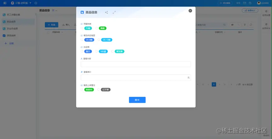 5.在「菜品信息」中点击「新建」,可输入菜品信息