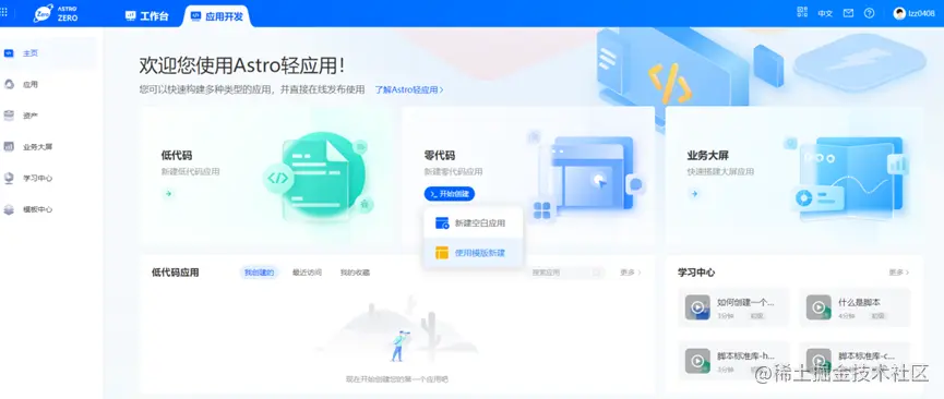 - 新建空白应用,即:从0开始自定义开发