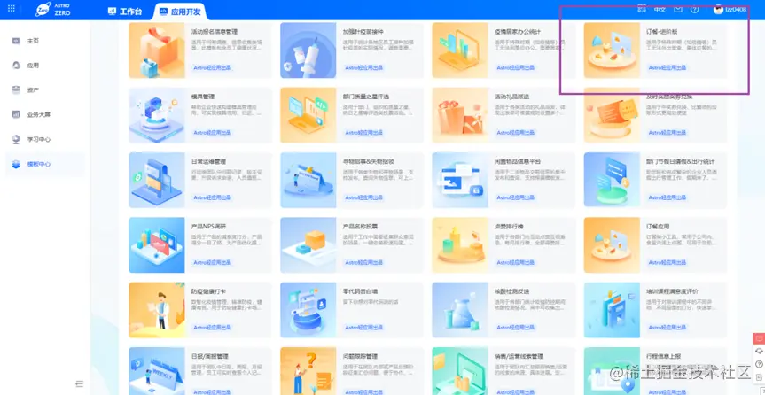 - 在「零码专区」,点击「全部」,选择「订餐-进阶版」