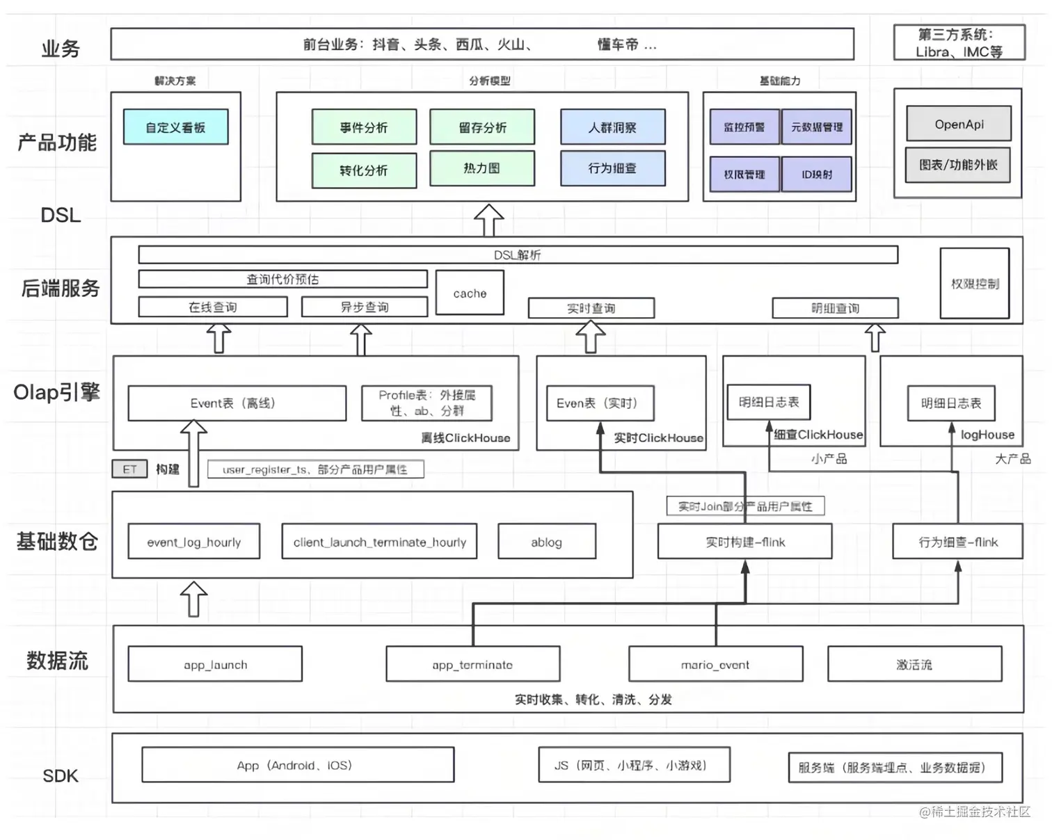 ByConity适合多种业务场景,在实时数据接入、大宽表聚合查询、海量数据下复杂分析计算、多表关联查询场景下有非常好的性能。我们用一个实际的业务场景来介绍下,这套行为分析系统是基于用户多维度行为分析平台,提供事件分析、留存分析、转化分析、用户分群、用户留存等多种分析方式和场景。本文将介绍下该用户多维度行为分析平台在使用原ClickHouse集群遇到的问题和挑战,以及通过迁移ByConity后如何解决这些问题并给业务带来的收益。