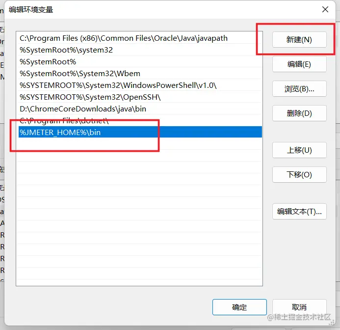 在 Path 后追加:%JMETER_HOME%\bin。