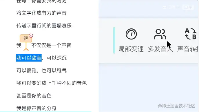 同时,魔音独创的“声音的word编辑器”拥有多音字、重音、连读、局部变速、多人配音等20种调音功能。基于出门问问自研大模型「序列猴子」,魔音工坊打通了从写作、配音到剪辑的全流程,新增AI文案创作功能,不仅可以帮用户轻松写出各种文本内容,还可以进行润色、翻译等。