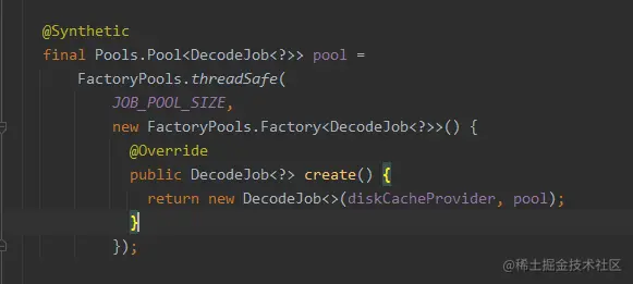 每次去加载图片都要一个DecodeJob 去执行图片加载任务,如果一段时间内执行成百上千个图片加载请求,有可能会造成内存抖动,有没有可以优化的地方呢?glide使用享元模式来复用DecodeJob对象,优化和节省内存的使用,如下。