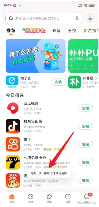 小米应用商店退出提示如下: