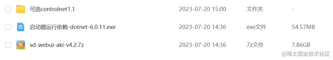 现在你已经将安装包下载好了,将下面的sd-webui-aki-v4.2解压缩,运行启动器运行依赖-dotnet-6.0.11这个文件: