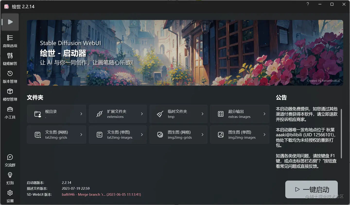 如果你是从零开始,这里推荐B站大佬秋葉aaaki一键包和启动器,可以点击下方链接去下载。