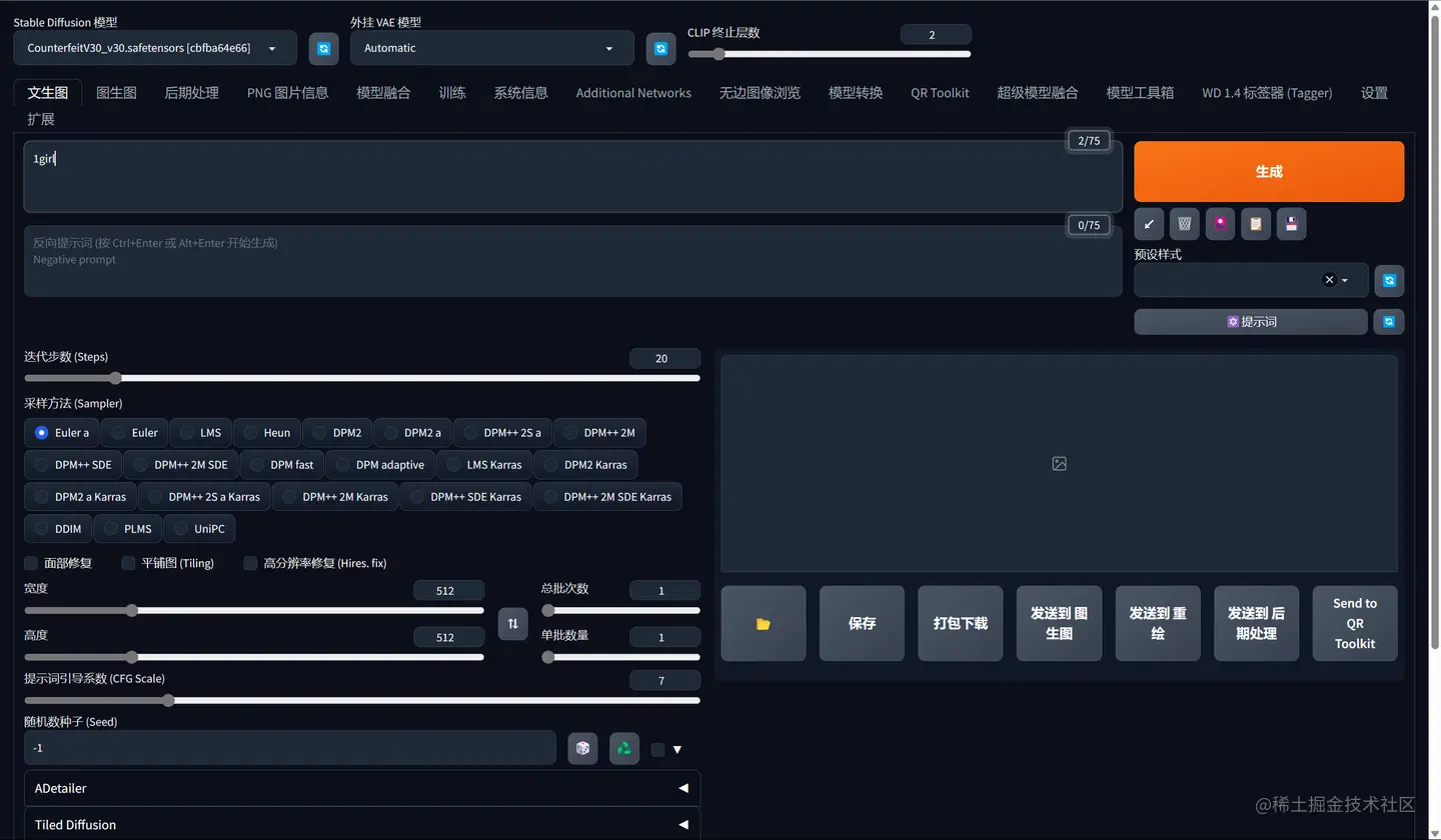 至此,Stable Diffusion本地部署已经完成,后面所有的更高级的操作都是基于此框架进行,这部分的内容我们后面慢慢聊。