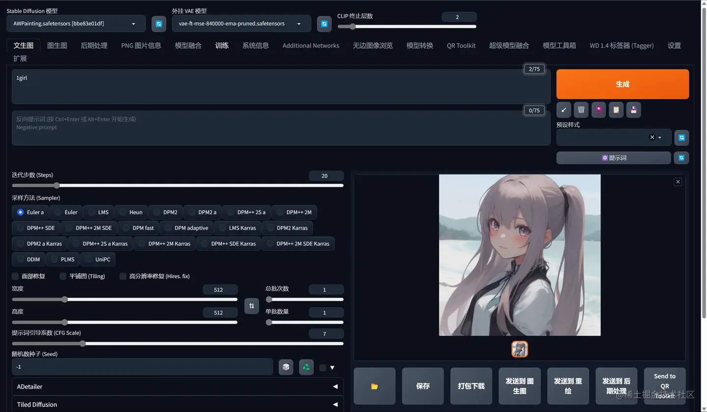 可以看到,它成功的生成了一张图片,到此为止,那么你Stable Diffusion本地部署就已经成功了,请尽情玩耍吧。