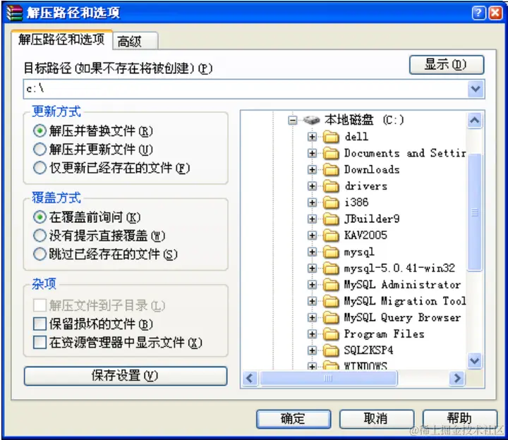 (1)将压缩文件 mysql-5.0.45-win32.zip 解压到自定义的一个目录下,在本例中解压到