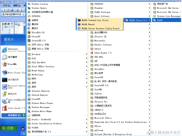 the MySQL Server now”复选框。如果想以后再配置,则取消复选框的选中状态。这里取消选中状态,后面再进行配置的介绍。至此,MySQL 安装完毕,Windows 的“所有程序”菜单中已经多了“MySQL”一项,如图 1-11 所示。