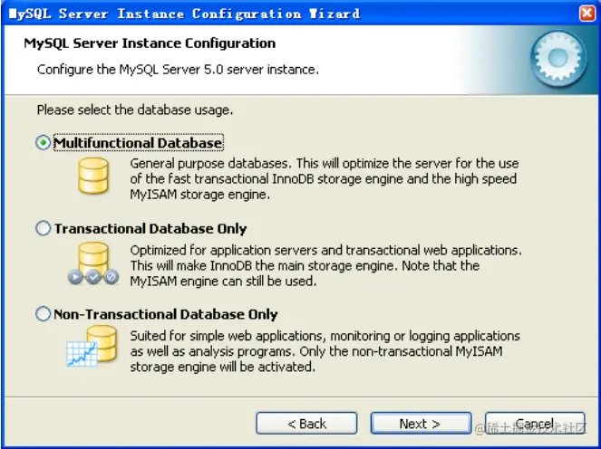 - Multifunctional Database(多功能数据库),此选项对事务性(InnoDB)和非事务性(MyISAM)存储引擎的存取速度都很快。