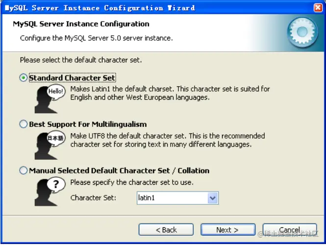 - Manual Selected Default Character Set/Collation(手工选择字符集)。