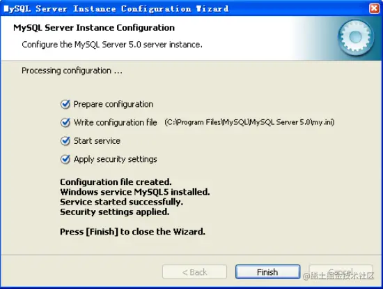 对于 noinstall 方式安装的 MySQL,系统的参数配置、服务的启动关闭都需要手工在命令窗 口中进行设置。参数文件可以在多个位置进行设置,这里用一个 c:\my.cnf 来进行操作,其他更详细的参数位置可以参考第 24 章中的参数设置方法。