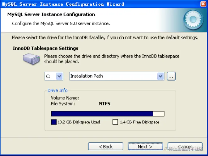 图1-16 MySQL InnoDB数据文件路径选择界面