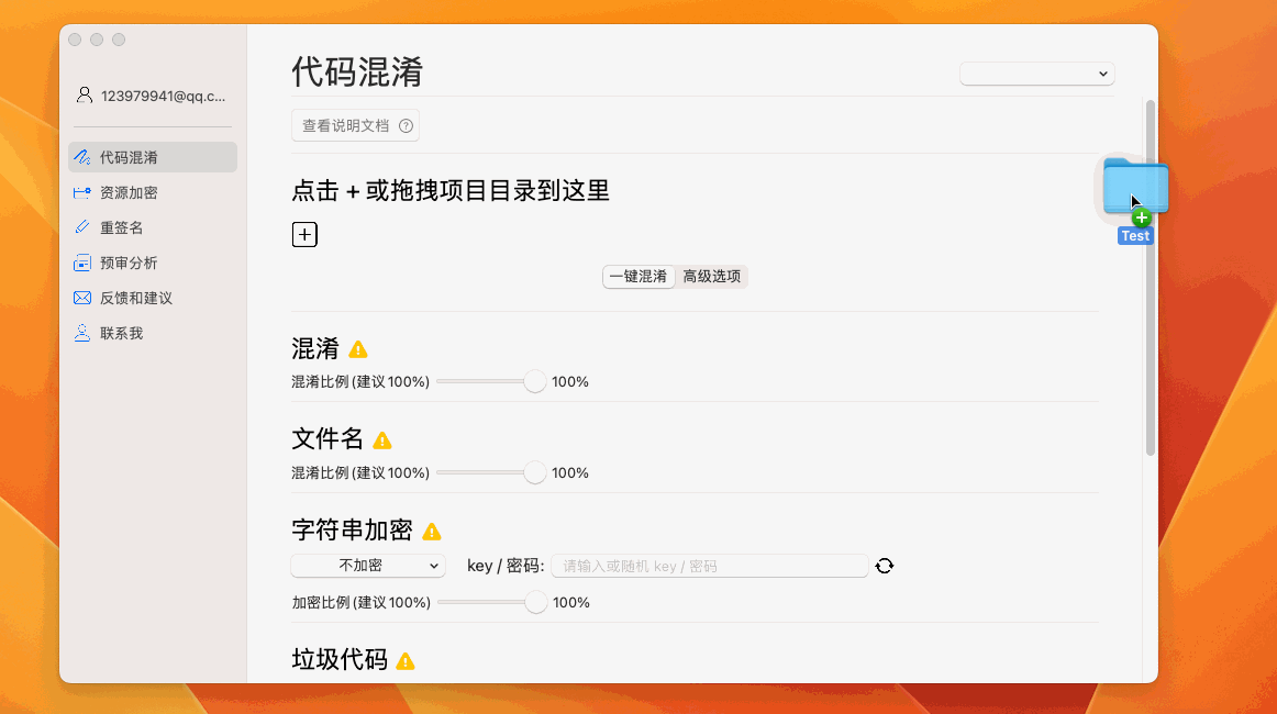 一键混淆默认开启了所有的混淆选项,开启字符串加密功能需要手动选择一种加密方式。