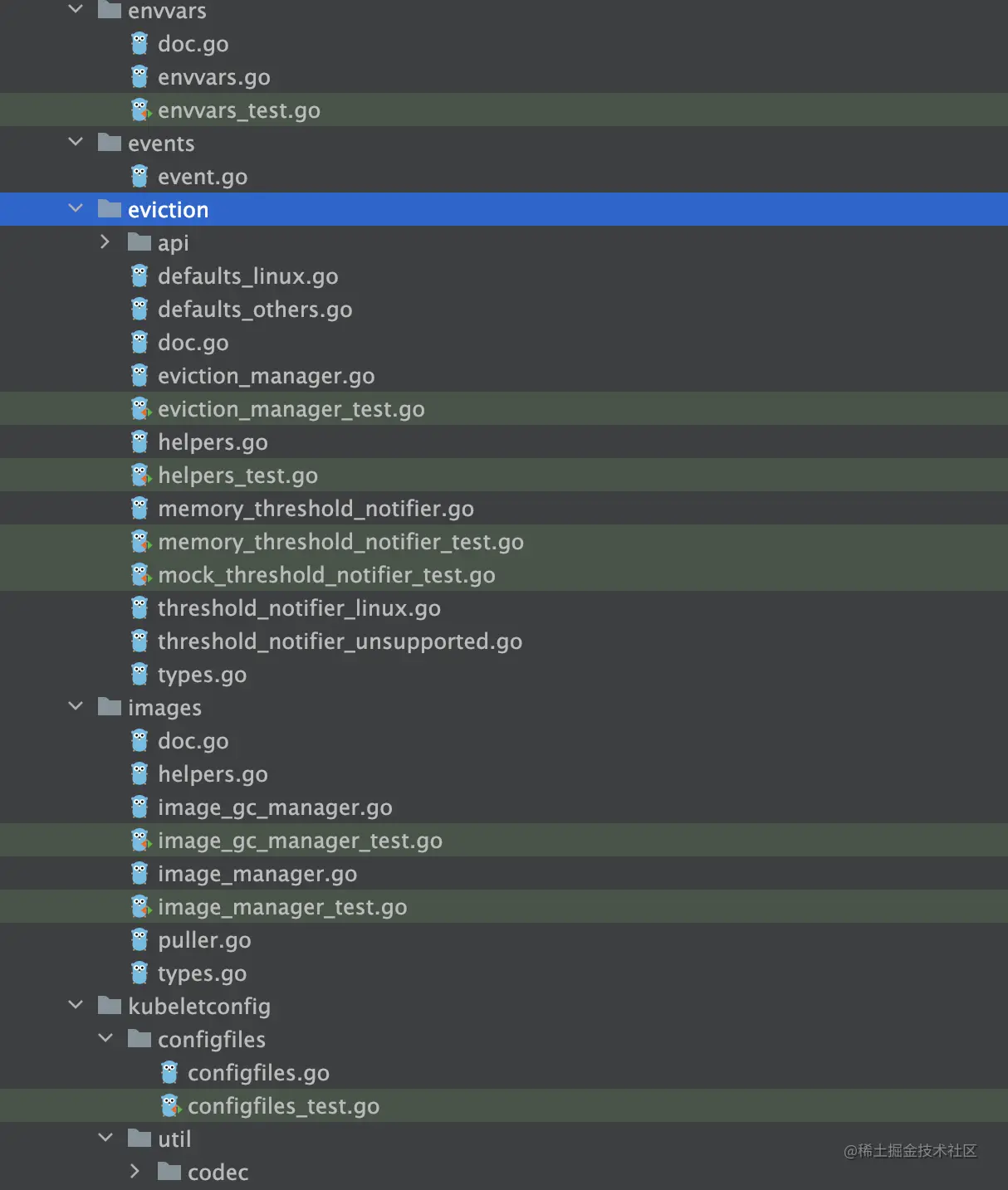 k8s项目中 pkg/kubelet/envvars,pkg/kubelet/events,pkg/kubelet/eviction,pkg/kubelet/images,pkg/kubelet/kubeletconfig这些目录都是 kubelet 组件的不同功能模块所在的代码目录。