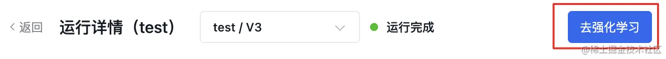 在运行任务的详情页右上角选择[去强化学习]开启强化学习训练任务。