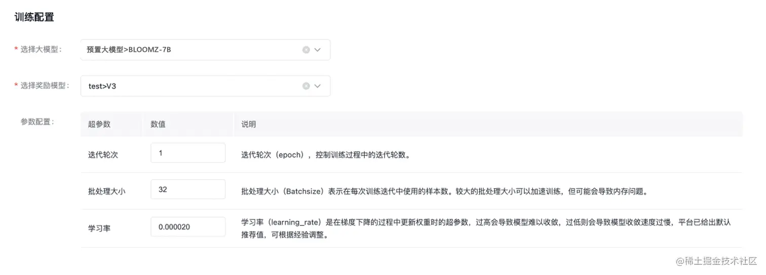 您需要在奖励模型训练任务界面,选择 “创建训练任务” 按钮。