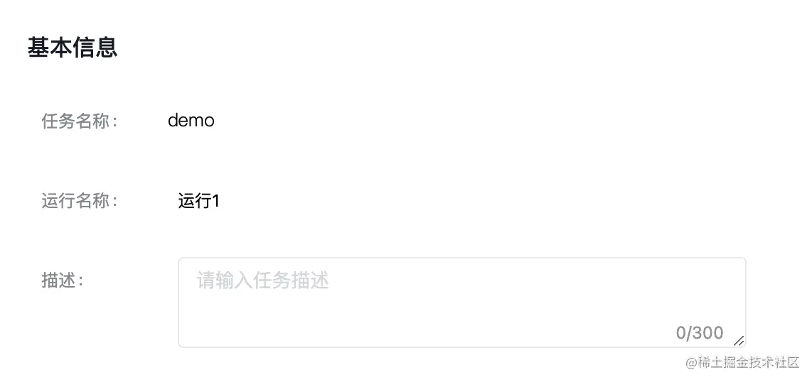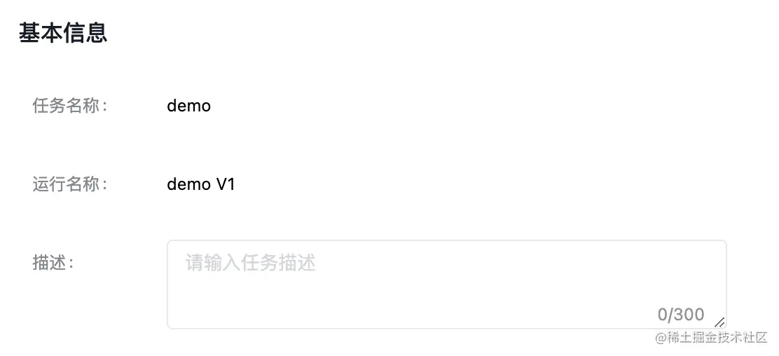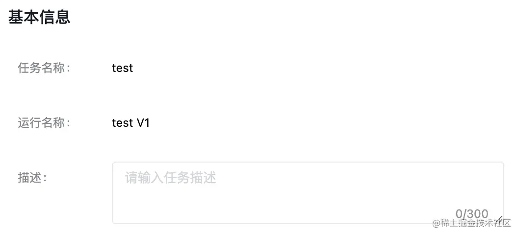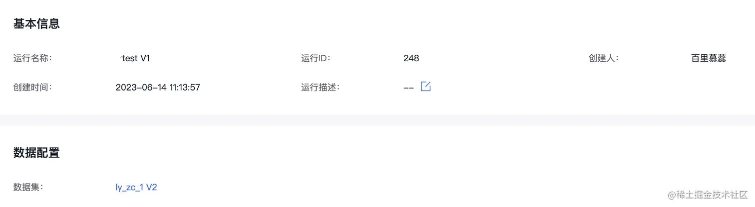 在运行任务的详情页可查看创建运行时的基本信息和数据配置,详情数据的来源为[新建运行]时填入的内容。