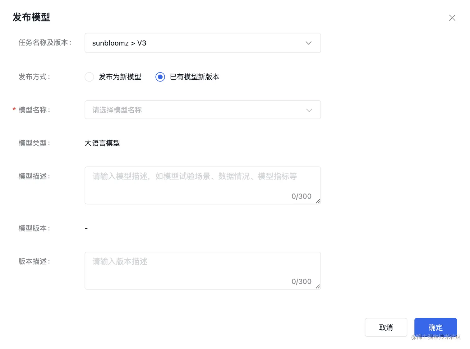 可以指定某个运行成功的任务,发布为模型。 填写好如下参数后,将被[模型管理]所纳管。
