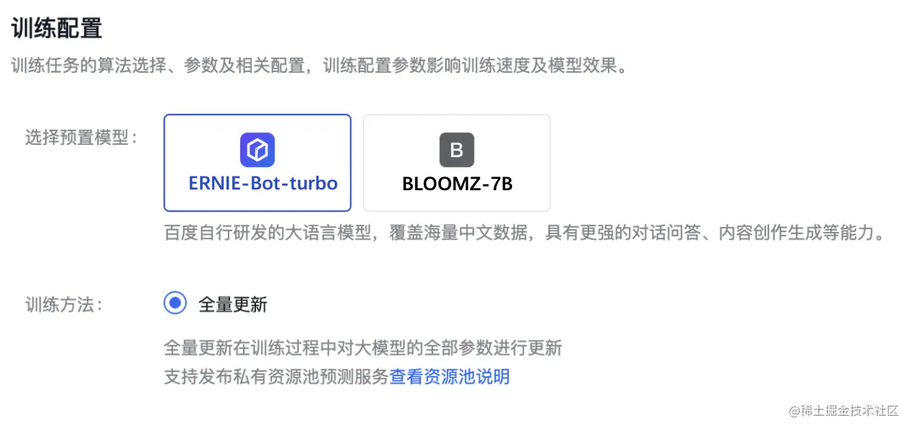 训练任务的选择数据及相关配置,大模型调优任务需要匹配多轮对话 - 非排序类的数据集。