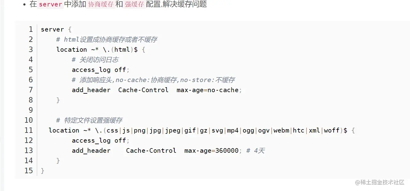 Cache-Control 采用 时间段来避免 Expires 过期时间的问题,可以使用max-age 设置过期时长。配置如下: