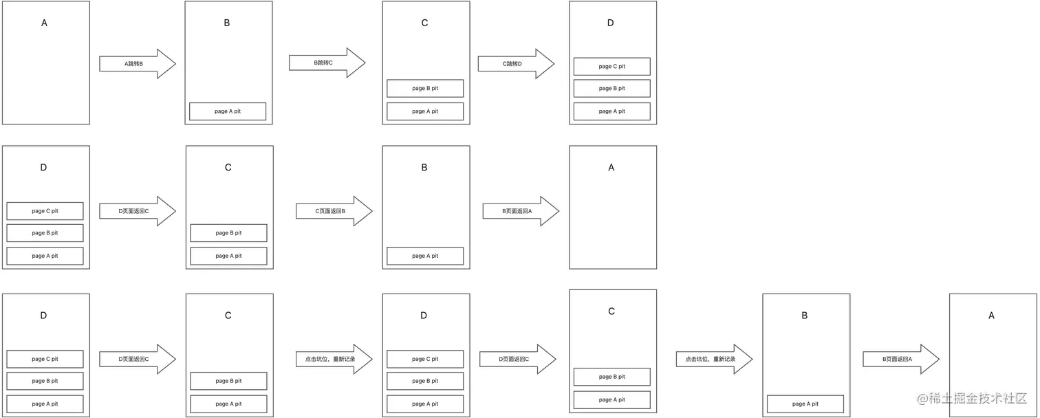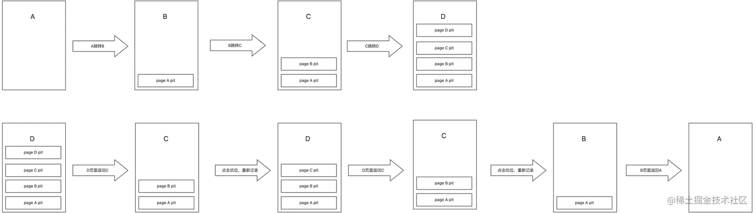 - 在D->C,C 在pageShow做初始化过滤时候需要将页面C记录和页面D记录一起删除。