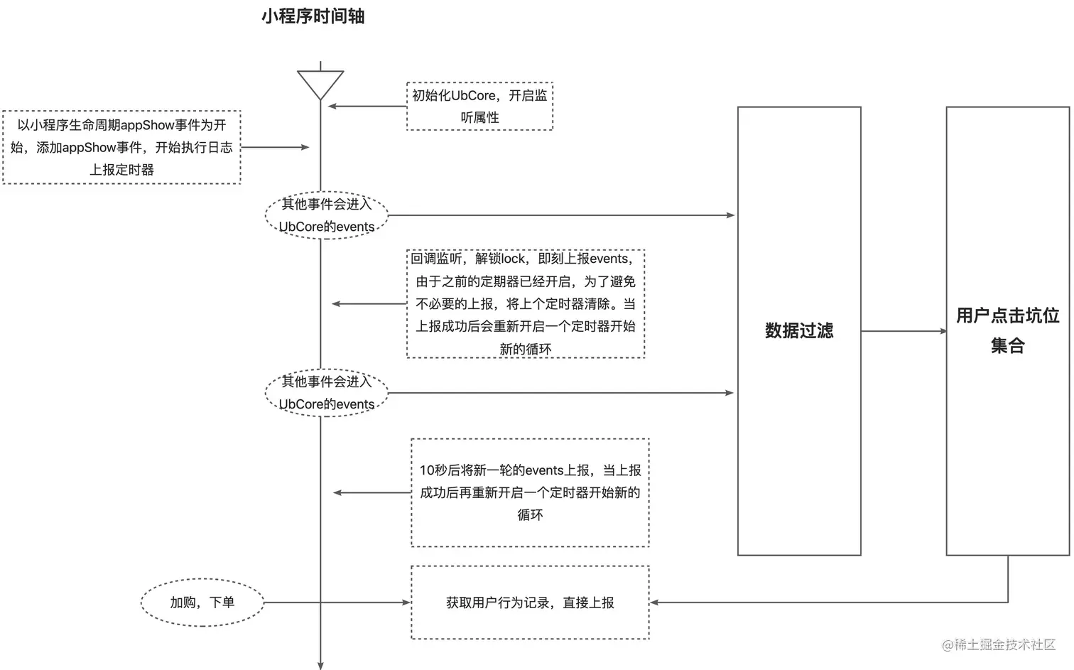 getCurrentPages()获取当前页面的路径和参数,在集合中查看是否有值,有值就删除记录,包括后面页面的记录】。因为A->B,B的记录一定是空,不会做处理。 只有当发生后退情况下D->C ,C页面的记录一定有值,并且处于C页面后只有2种情况(1)重新记录新的坑位 (2)继续后退,不管是哪种情况都可以把当前页面先进行记录清空。 - 根据制定的规则进行过滤,指定的页面,事件类型是elementClick,带有坑位标识,过滤出符合条件的数据后,在这个节点再做一次清洗操作【根据