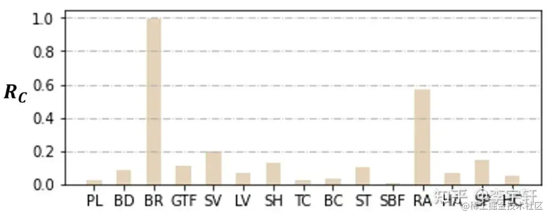 ▲ 图6. DOTA-v1.0中物体类别的预期感受野和GT框面积的比率:Rc。不同物体类别所需的相对范围有很大的不同。