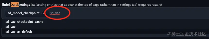 在 “Quicksettings list” 里再添加两项:sd_vae、CLIP_stop_at_last_layers