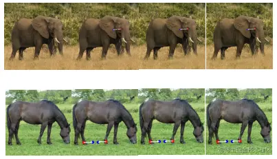 ii) 搜索区域内的相似点导致的跟踪错误(图2),例如轮廓线和马腿等。
