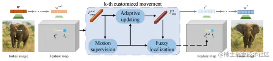 (1)运动监督(motion supervision)过程指导handle point向着对应的target point进行移动;
