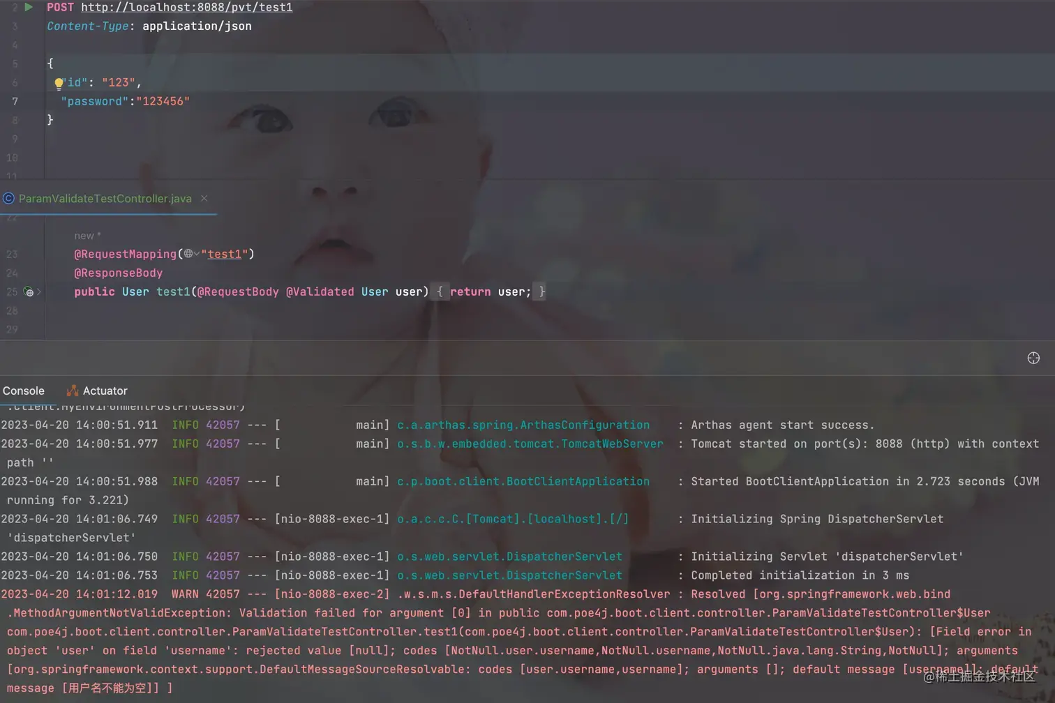 最后,在使用 @Validated 注解的 Controller 中,对请求参数使用自定义的 @ValidEnum 注解进行验证
