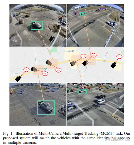 本文提出了一种针对城市规模的多摄像头多目标跟踪任务的新颖方法。所提出的方法包括车辆检测、ReID特征提取、单摄像头多目标跟踪和跨摄像头关联等关键组件,共同实现多摄像头多目标跟踪的结果。特别地,作者提出了两个关键创新点来改善跟踪性能:基于位置感知跟踪方法考虑了目标的空间上下文,基于边界框的匹配方法在跨摄像头关联过程中进行了细粒度的边界框级特征比较,提高了匹配的准确性。