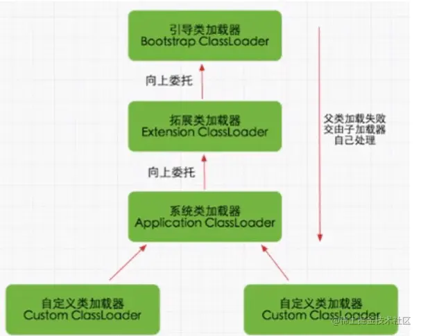 Java虚拟机对class文件采用的是按需加载的方式,也就是说当需要使用该类时才会将它的class文件加载到内存生成class对象。而且加载某个类的class文件时,Java虚拟机采用的是双亲委派模式,即把请求交由父类处理,它是一种任务委派模式