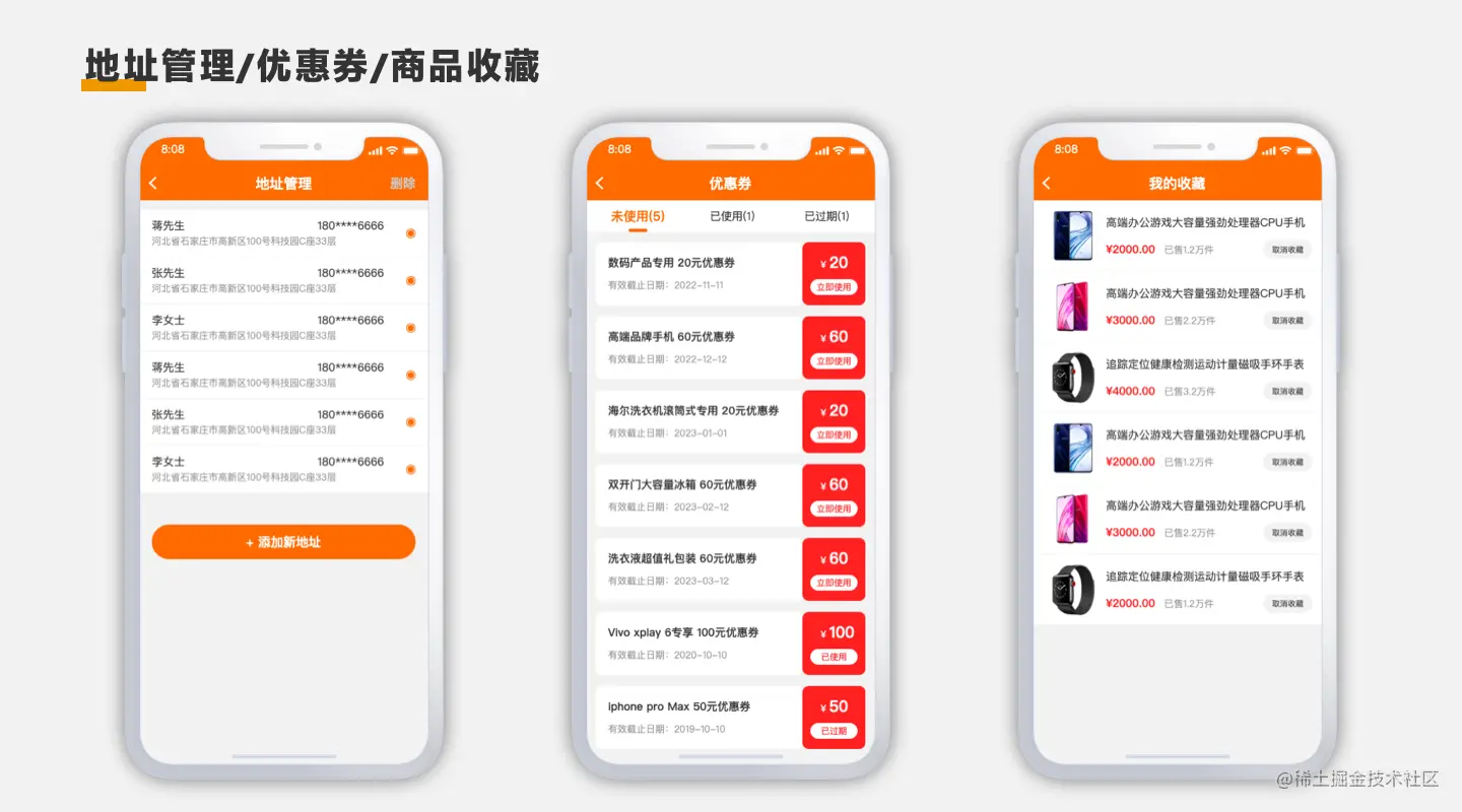 本原型通过商城首页、商品专区、商品列表、商品详情等页面进行了“信息流”简洁且友好的展示 [路线图:汇总->列表->详情] 路线明朗。提供的订单确认、收银台、我的订单管理等页面,以订单流转的基本流程 [路线图:购买->确认订单->收银台]进行“资金流”统一且有效的管控。添加收货地址、地址管理来配合“物流”最终完成用户在商城购物的完整闭环;并且原型中的评价中心、在线客服功能用以满足用户购物的服务保障。