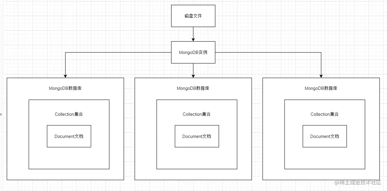 MongoDB是一个基于分布式文件存储的数据库,由 C++ 编写,可以为 WEB 应用提供可扩展、高性能、易部署的数据存储解决方案,同时MongoDB是一个介于关系型数据库和非关系型数据库之间的产品,是非关系型数据库中功能最丰富的,最像关系型数据库的,在高负载的情况下,通过添加更多的节点,可以保证服务器的性能。结构体系图如下所示: