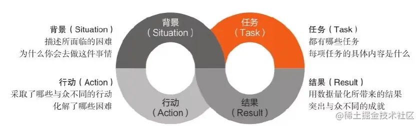 运用 STAR 法则来回答面试官的问题,会让你的回答变得更加清晰和具有逻辑。