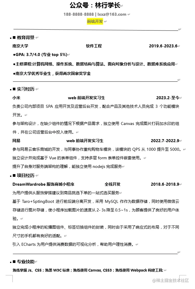 以上的内容基本满足了一份简历应该包括的所有,学长制作了一份成品,大家可以看看。