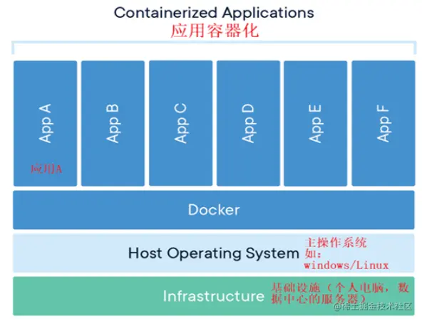 - 传统虚拟机技术是虚拟出一套硬件后,在其上运行一个完整操作系统,在该系统上再运行所需应用进程;