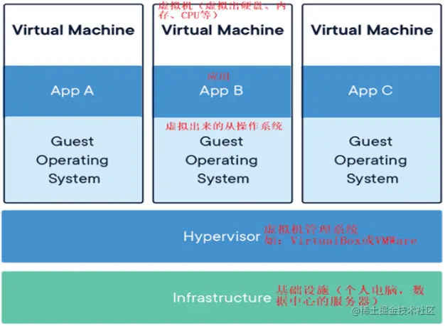 - 资源占用多 2. 冗余步骤多 3. 启动慢