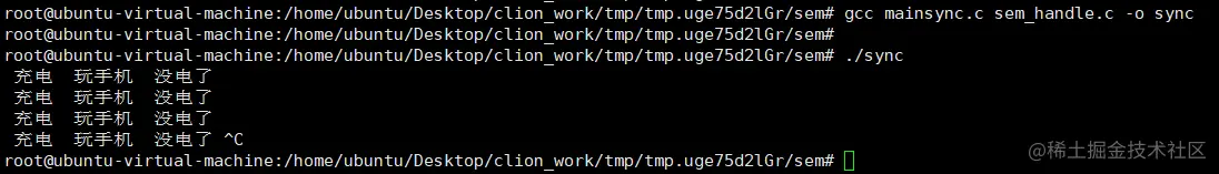 - 当父进程释放 SEM_CONTROL_C 时, 子进程输出 玩手机 ,释放 SEM_CONTROL_P
