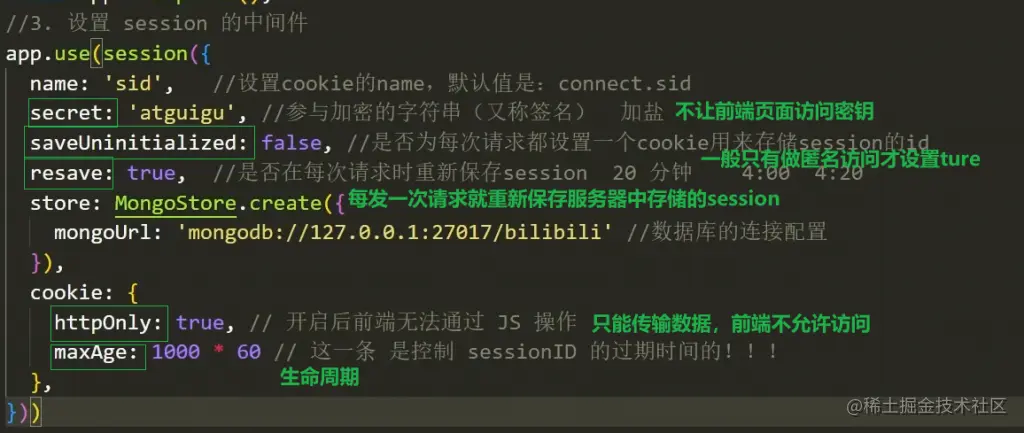 saveUninitialized: false, //是否为每次请求都设置一个cookie用来存储session的id