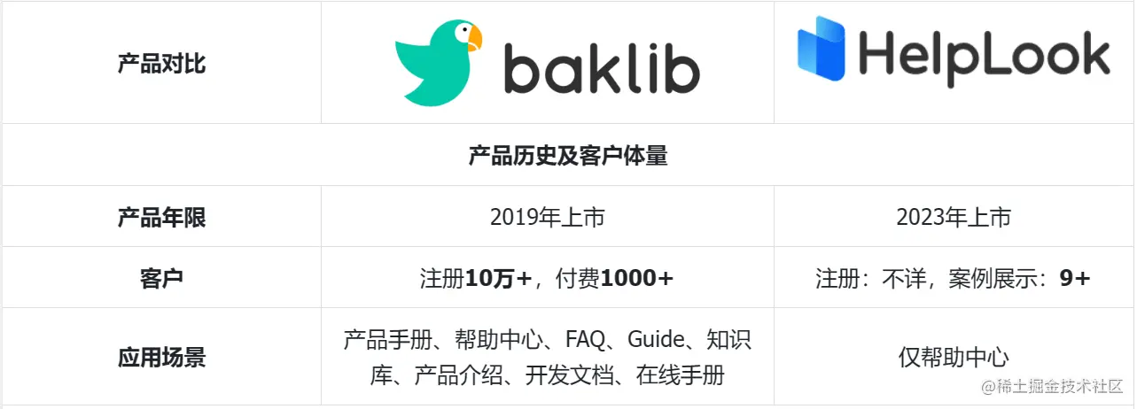 Helplook: Helplook是2023年新出来的产品,截止目前为止有大约四五个月的时间,其合作客户也是有一定累计的,是一款制作在线帮助中心的产品。Helplook目前只有对外帮助中心的应用,提供简洁的文档编辑功能与可定制的个性主页。
