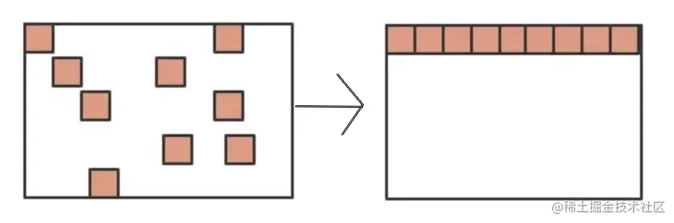 第二步:整理内存碎片,v8解决方式非常简单粗暴,在清除阶段结束后,把存活的对象全部往一边靠拢,就和上图差不多,这一部分是非常耗时的
