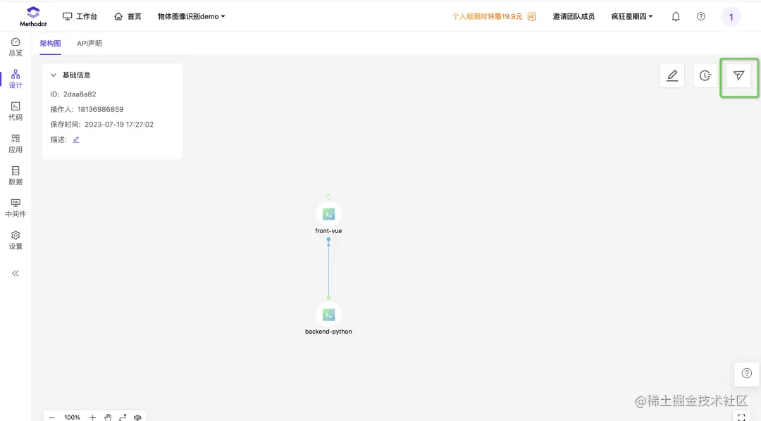 点击架构图右上角的发布按钮。